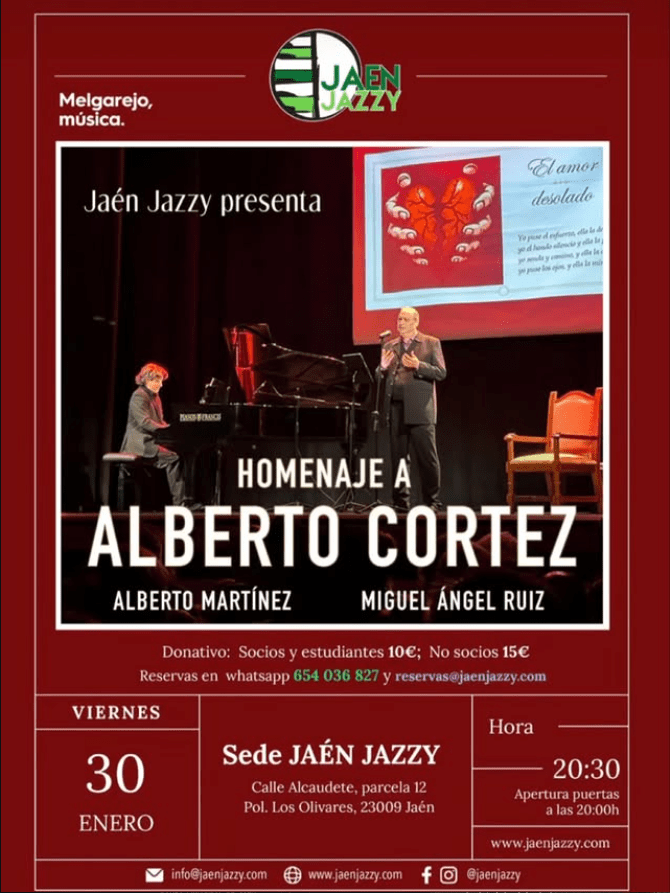 Reservas en whatsapp 654 036 827 y reservas@jaenjazzy.com